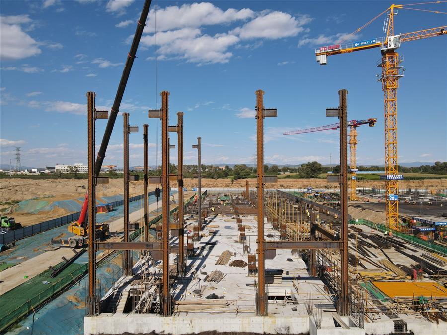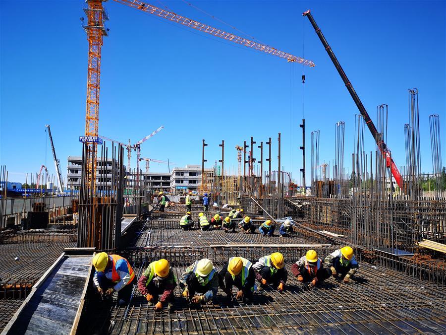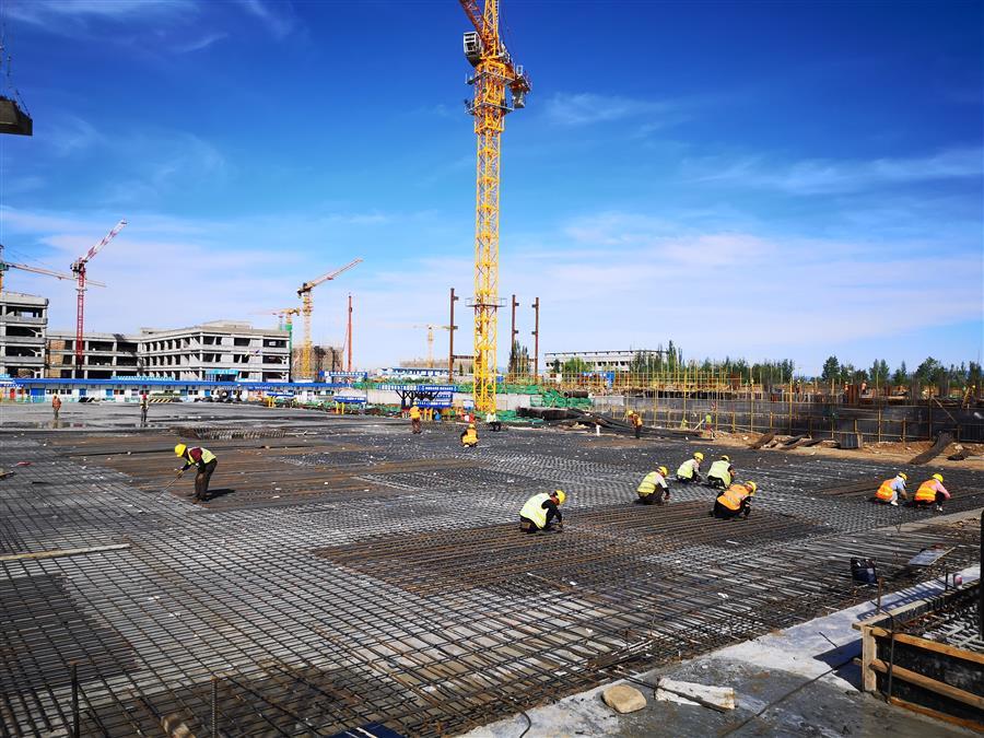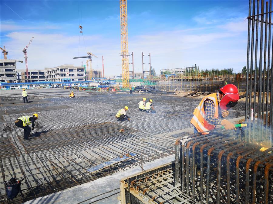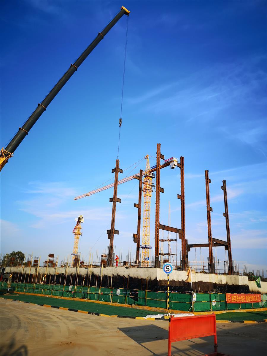 目前,項(xiàng)目正在進(jìn)行主體施工,施工現(xiàn)場正緊張有序地進(jìn)行著模板安裝、鋼筋綁扎、水電管線預(yù)埋、鋼結(jié)構(gòu)吊裝等工作。